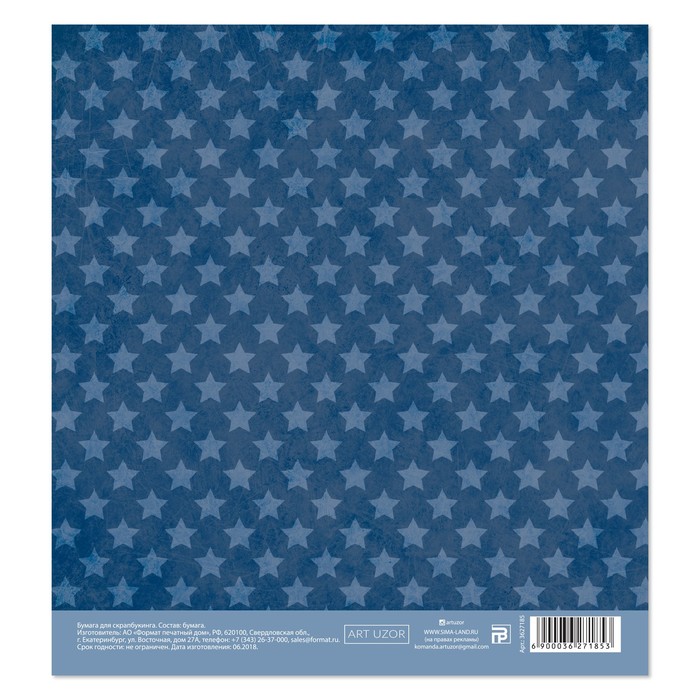 Бумага для скрапбукинга «Звёздочки, синяя», 15,5 х 15,5 см, 180 г/м