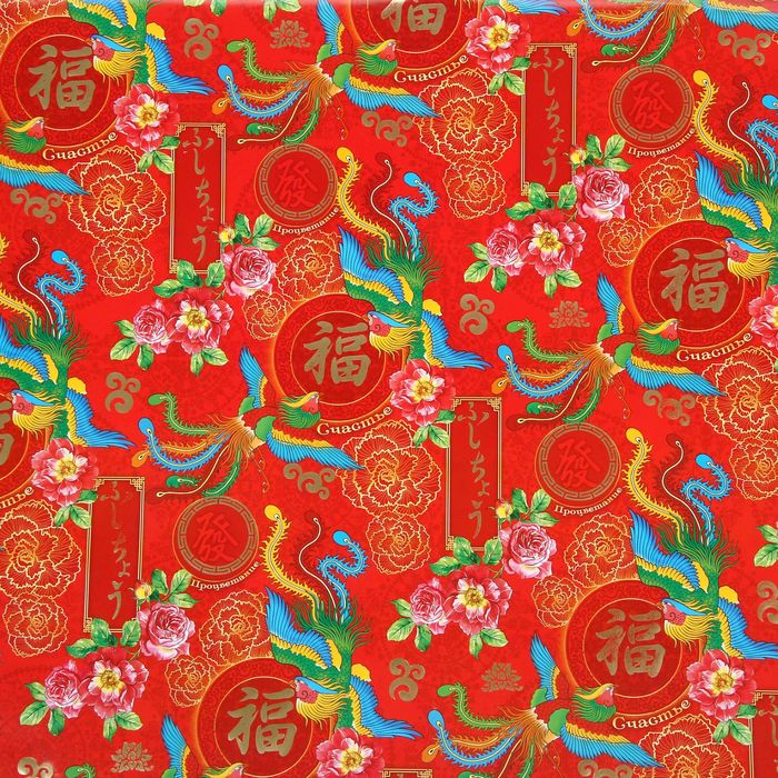 Бумага упаковочная глянцевая (тиснение) "Феникс", 100х70 см, 80 г/м2