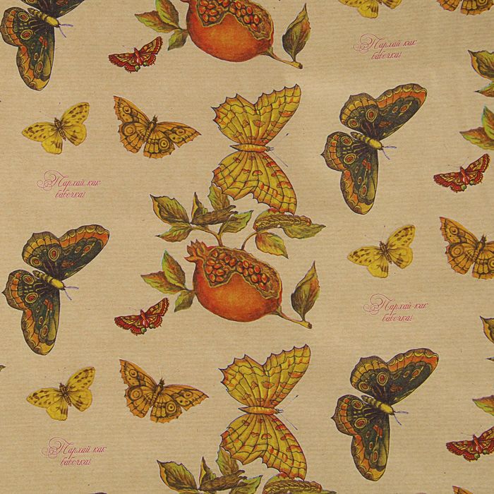 Бумага упаковочная крафт "Порхай как бабочка", 0,83 x 10 м, 40 г/м²