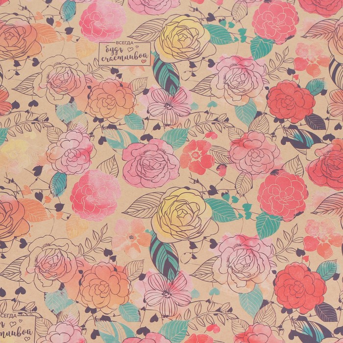 Бумага упаковочная крафтовая «Будь всегда счастлива», 50 × 70 см