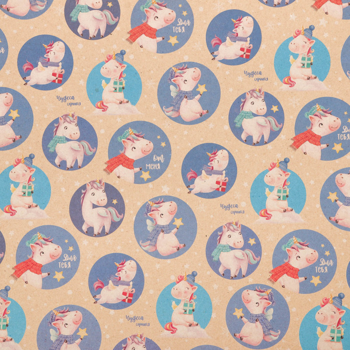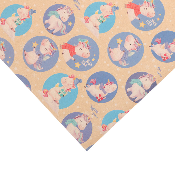 Бумага упаковочная крафтовая «Чудесные единороги», 50 × 70 см