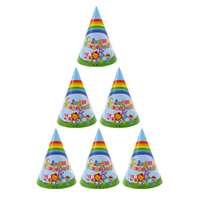 Бумажные колпаки "С днём рождения! Радуга", набор 6 шт., 16 см