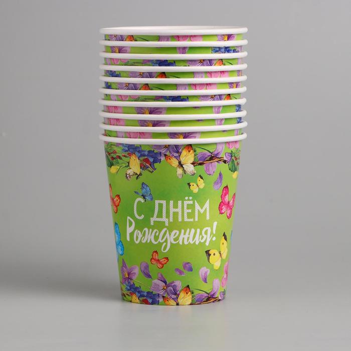 Бумажный стакан "С Днём Рождения", Цветочки, 250 мл