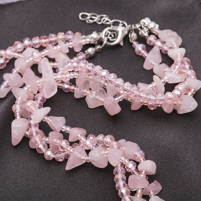 Ни один стиляга не будет выглядеть современно без искусно подобранных украшений, которые завершат его образ! Бижутерия — это современная недорогая альтернатива изделиям из золота и прочих драгоценных металлов. Бусы крошка мелкая 3 нити "Кварц розовый", 45см — это то, что добавит вам шарма!