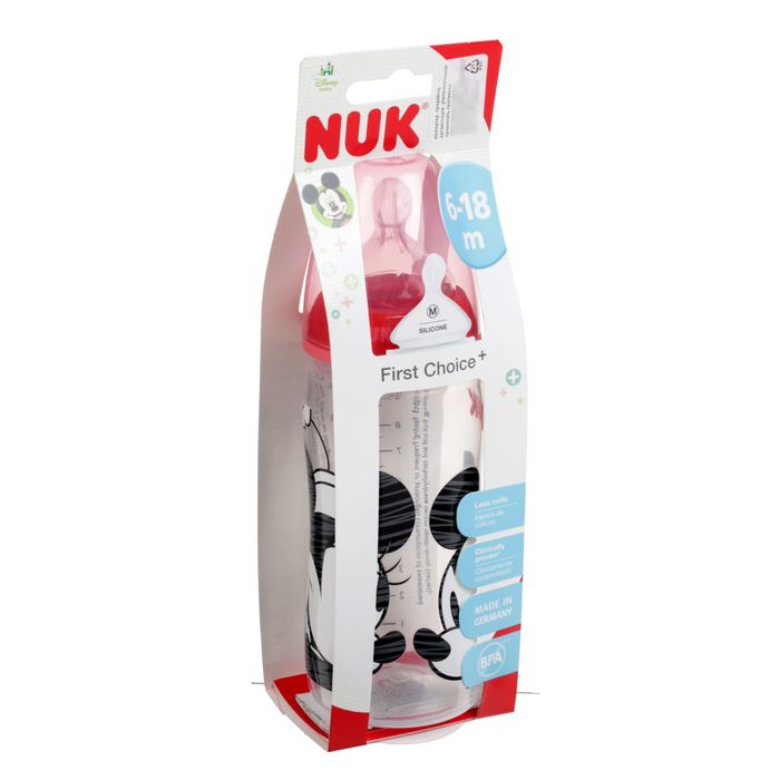 Бутылочка для кормления First Choice Plus Mickey Mouse, размер М, 300 мл, от 6 мес., цвета МИКС