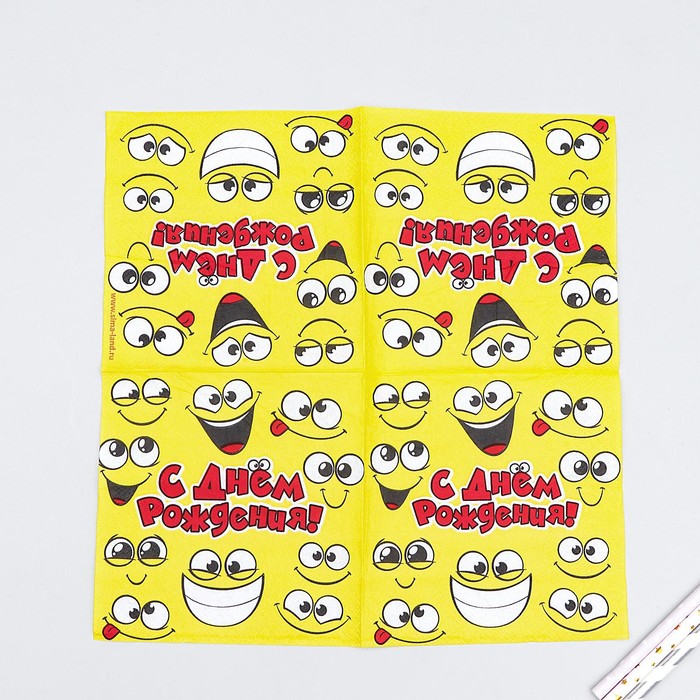 Cалфетки "С Днем Рождения!"смайлы 25*25см (набор 20 шт) — то, что необходимо в любом доме. Ведь ни одно торжество не обходится без красивого оформления. Более того, такие салфетки послужат не только отличным украшением праздничного стола, но и станут полезными в быту.