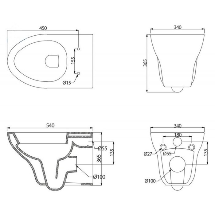 Чаша унитаза BelBagno ANTO P-trap BB112CH, подвесной, с креплением