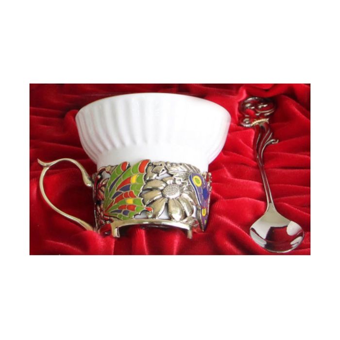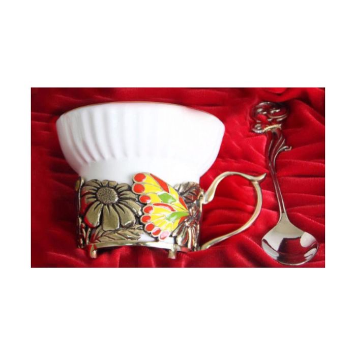 Чашка «Бабочки и цветы» в шкатулке из бумвинила