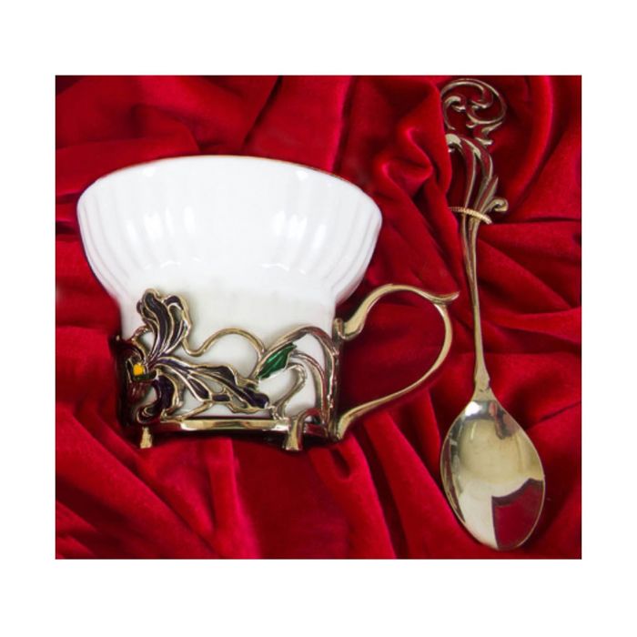 Чашка фарфоровая с цветками из латуни «Ирисы» в шкатулке