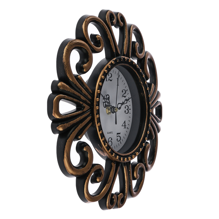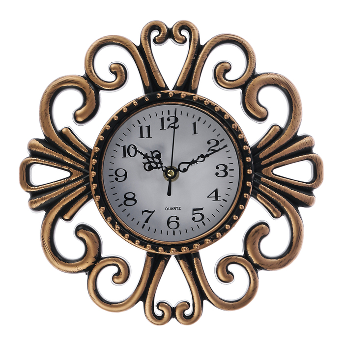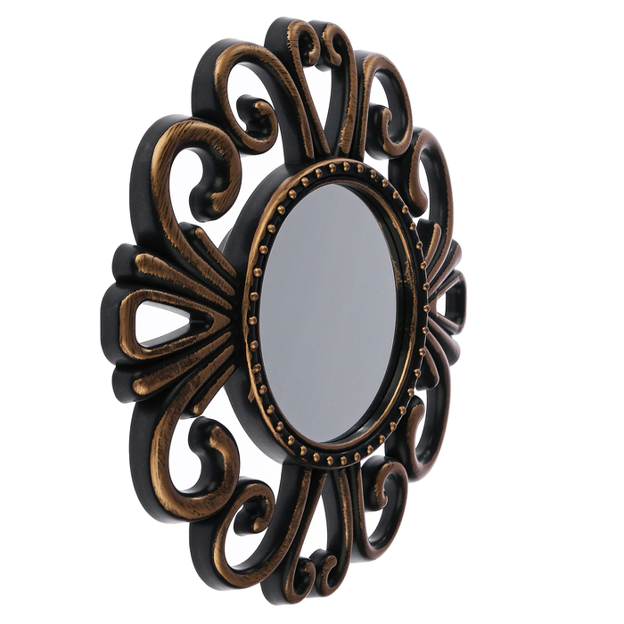 Часы 2в1 с зеркалом, с завитушками, циф-т d=11.5 см, цвет состаренное золото, 28х27 см