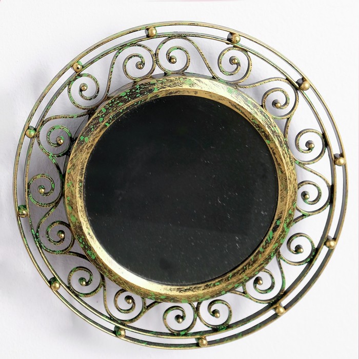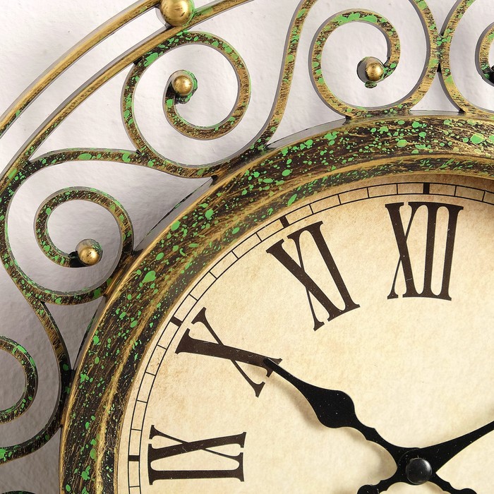 Часы 3в1 с зеркалом, двойной обод, римские цифры, ажурная резьба, бронзовые, циф-т d=30 см