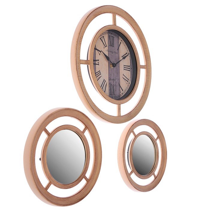 Часы 3в1 с зеркалом, двойной обод, римские цифры, бежевые, циф-т d=33 см