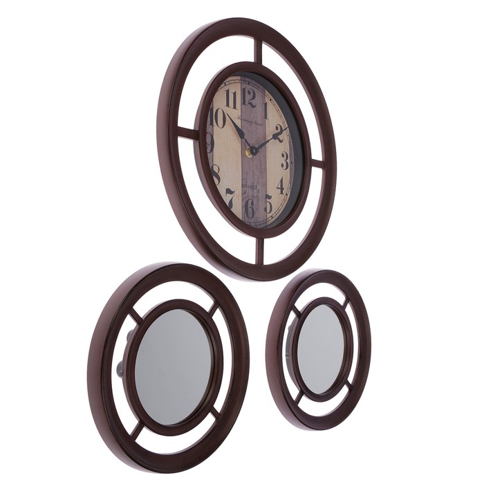 Часы 3в1 с зеркалом, двойной обод, тёмно-коричневые, циф-т d=33 см