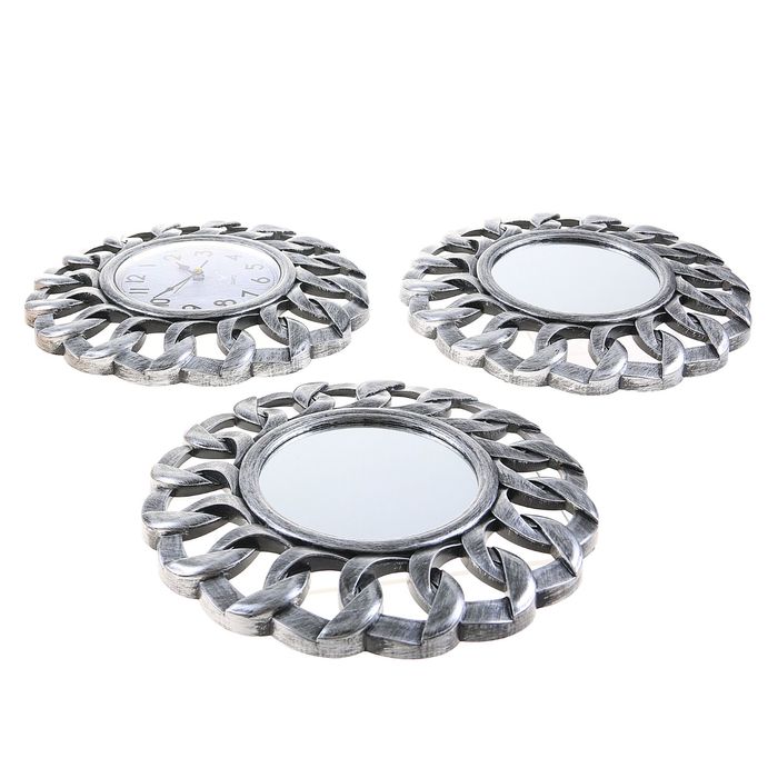 Часы 3в1 с зеркалом «Лепнина», рама-петли, серебристые, 80х25 см