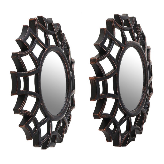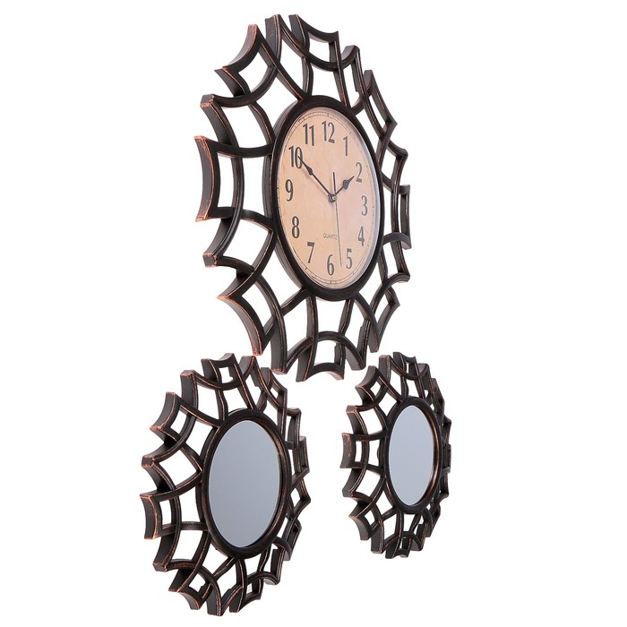Часы 3в1 с зеркалом «Лепнина», рама-ветви, чёрные, d=40 см