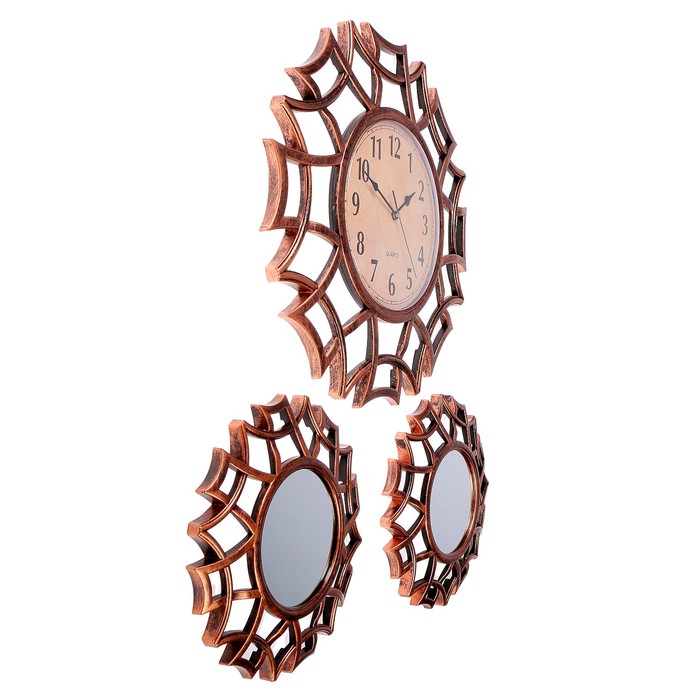 Каждому хозяину периодически приходит мысль обновить свою квартиру, сделать ремонт, перестановку или кардинально поменять внешний вид каждой комнаты. Часы 3в1 с зеркалом «Лепнина», рама-ветви, медные, d=40 см — привлекательная деталь, которая поможет воплотить вашу интерьерную идею, создать неповторимую атмосферу в вашем доме. Окружите себя приятными мелочами, пусть они радуют глаз и дарят гармонию.