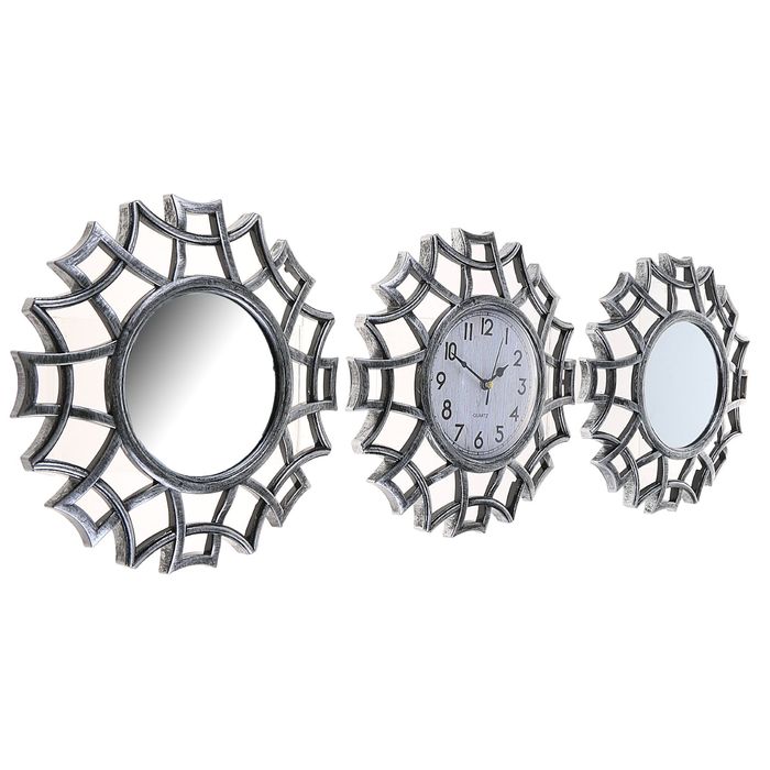Часы 3в1 с зеркалом «Лепнина», рама-ветви, серебристые, 80х25 см