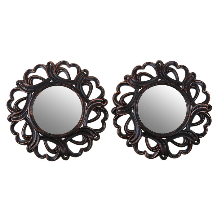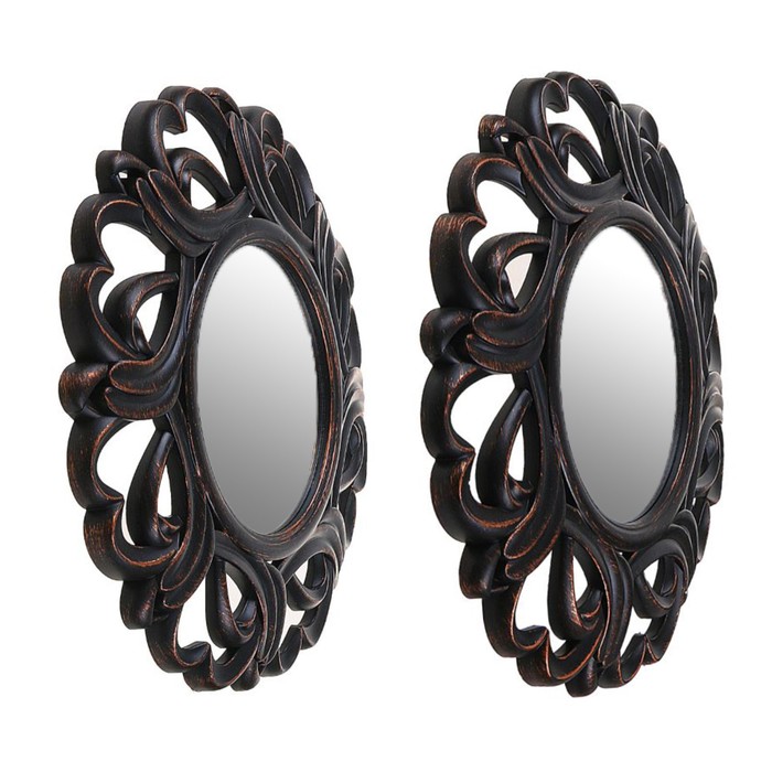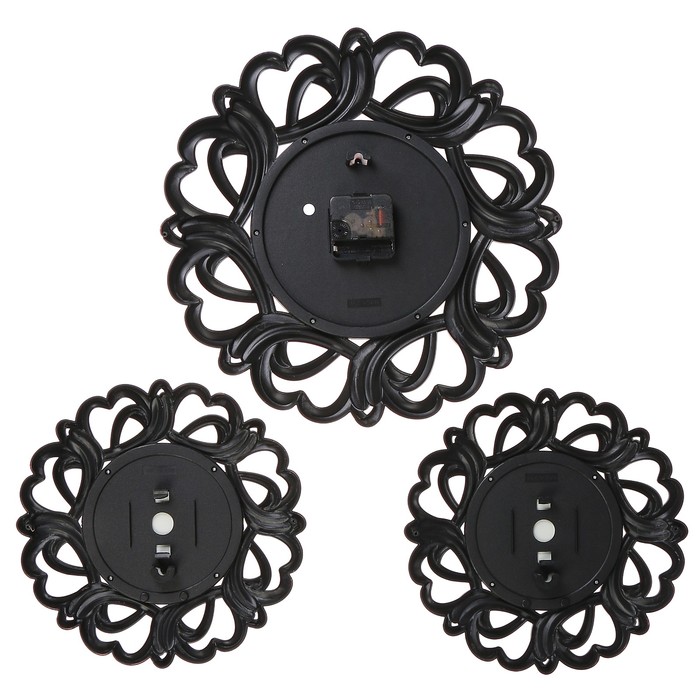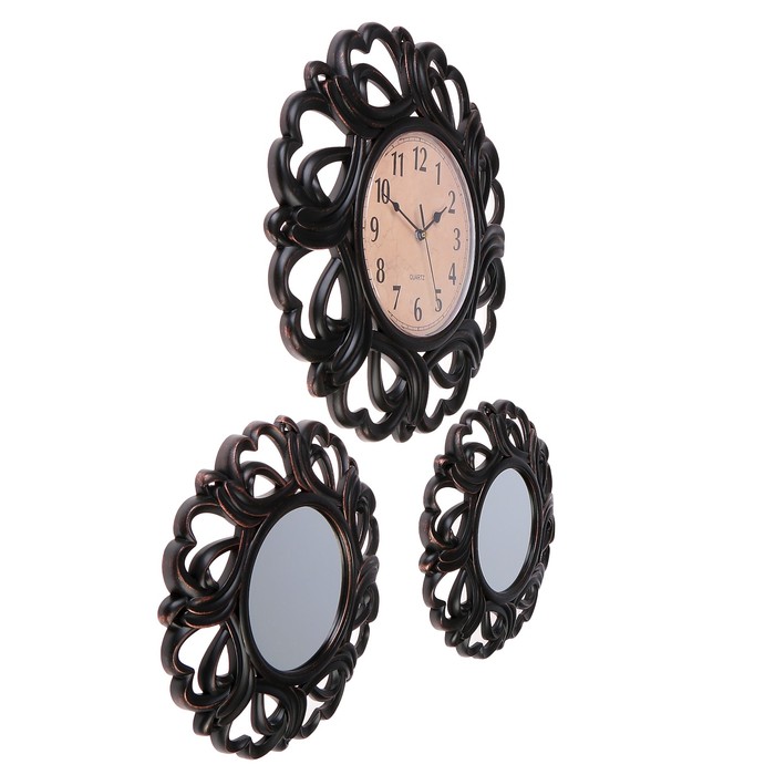 Часы 3в1 с зеркалом «Лепнина», рама-завитки, чёрные, d=35 см