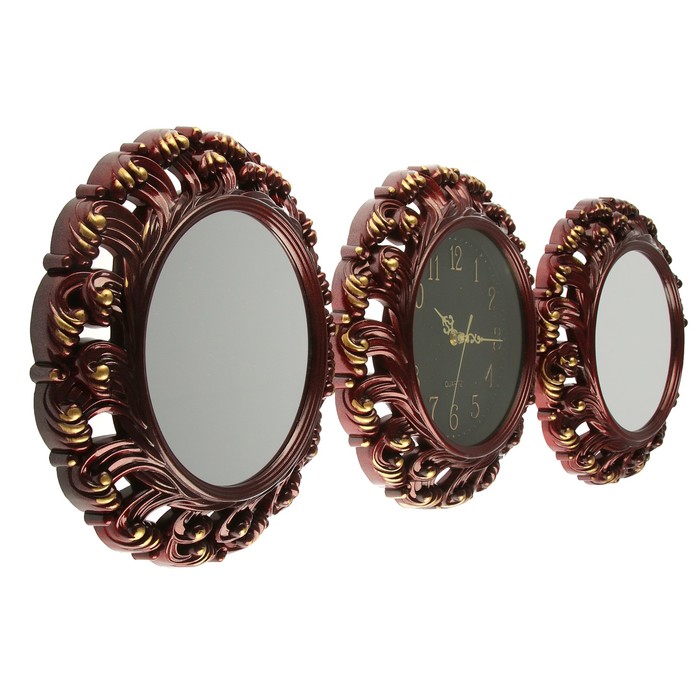 Часы 3в1 с зеркалом, пластик, медные, d=30 см