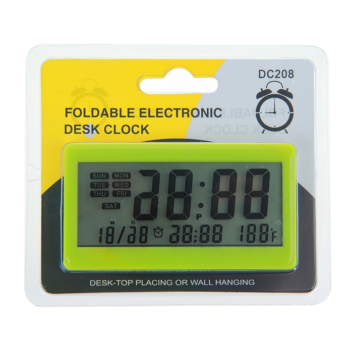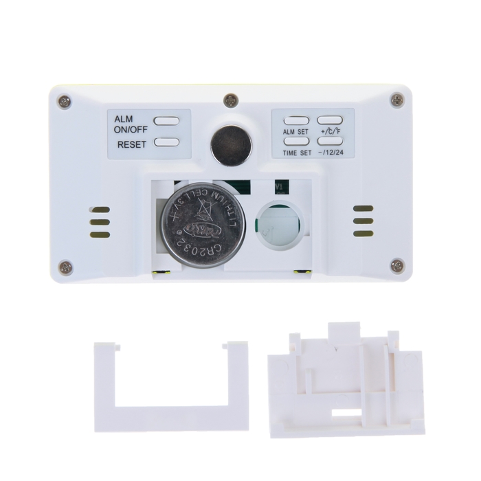 Электронные часы удобны в использовании и многофункциональны. На дисплее отображается дата, время, месяц и день недели, а также температура воздуха. Лёгкая настройка обеспечивается кнопками, расположенными на обратной стороне прибора. Здесь же можно установить время звонка будильника. Подсветка экрана и чёткая индикация цифр гарантируют их видимость даже из дальних углов комнаты. В комплект входит подставка для устройства.