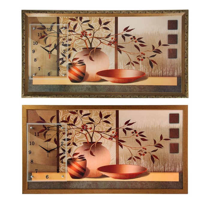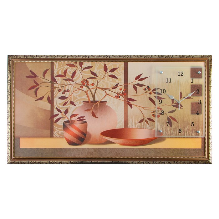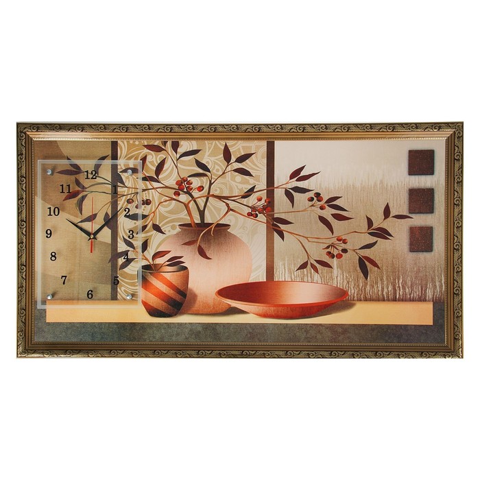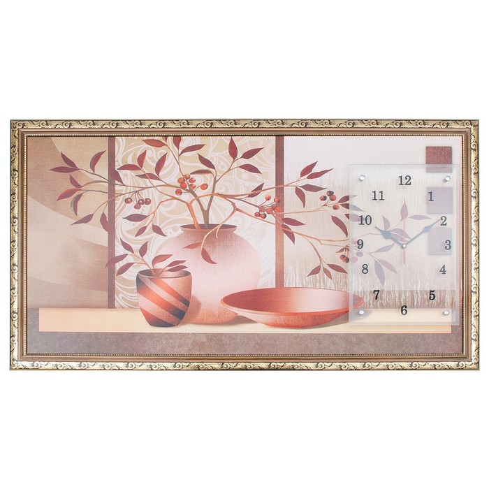 Часы-картина настенные "Две вазы с цветами и блюдо", 50х100 см микс