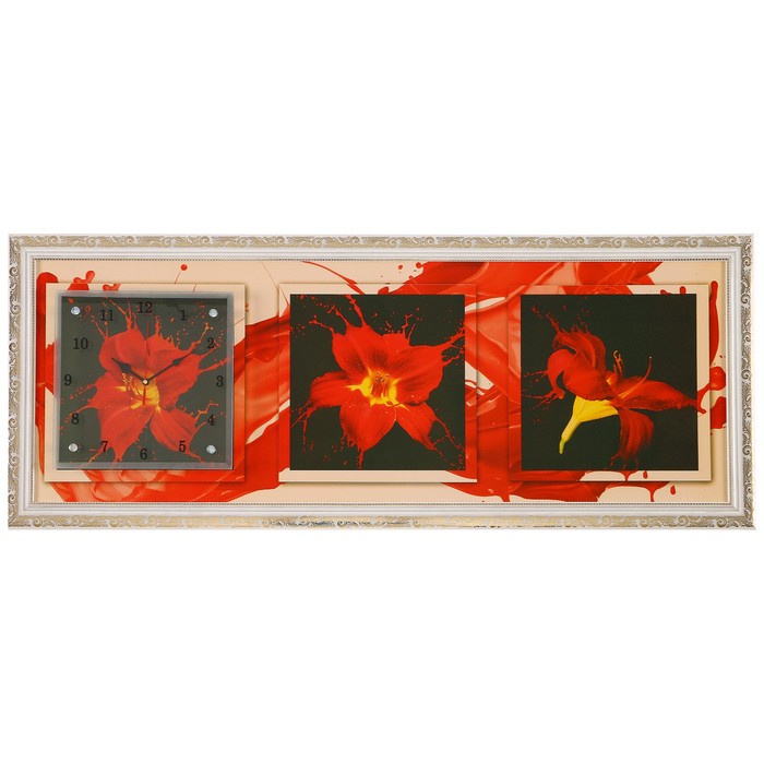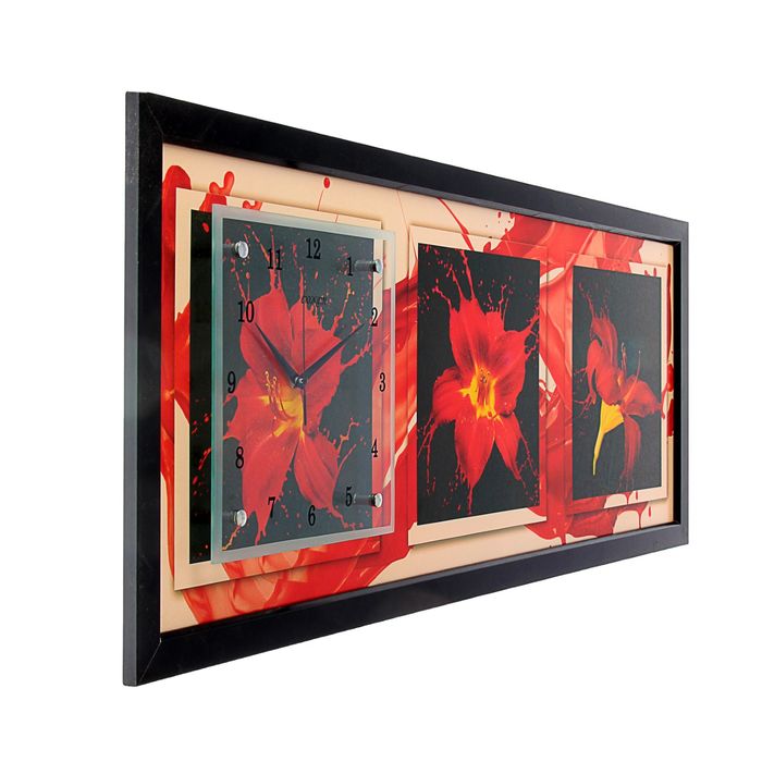 Часы-картина настенные "Красные цветы", 35х100 см микс