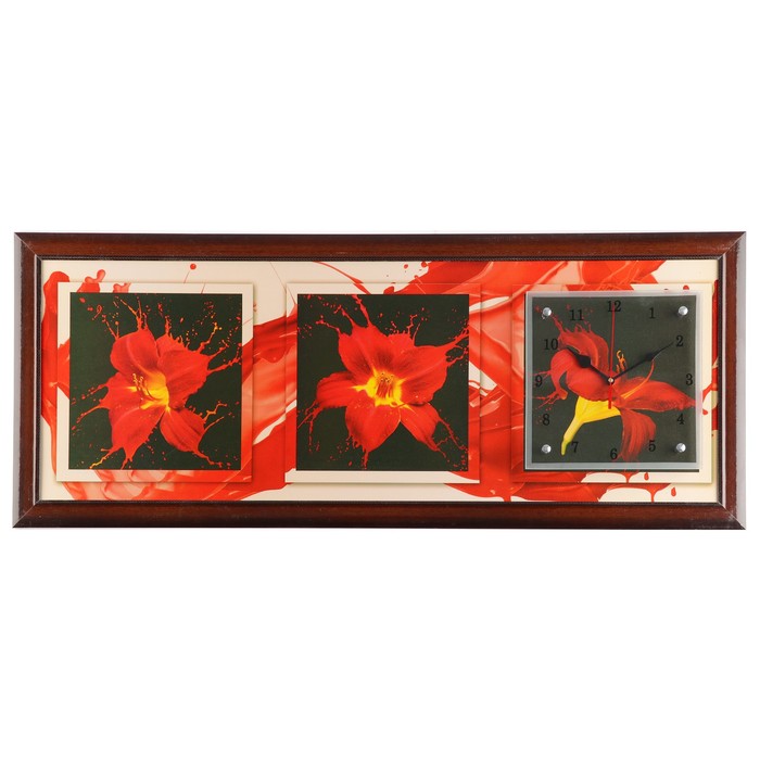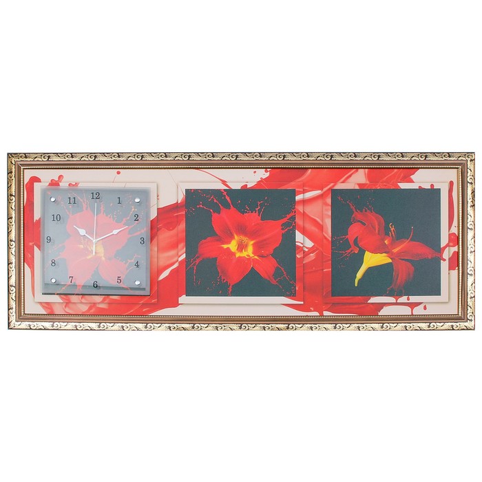 Каждому хозяину периодически приходит мысль обновить свою квартиру, сделать ремонт, перестановку или кардинально поменять внешний вид каждой комнаты. Часы-картина настенные "Красные цветы", 35х100 см микс — привлекательная деталь, которая поможет воплотить вашу интерьерную идею, создать неповторимую атмосферу в вашем доме. Окружите себя приятными мелочами, пусть они радуют глаз и дарят гармонию.