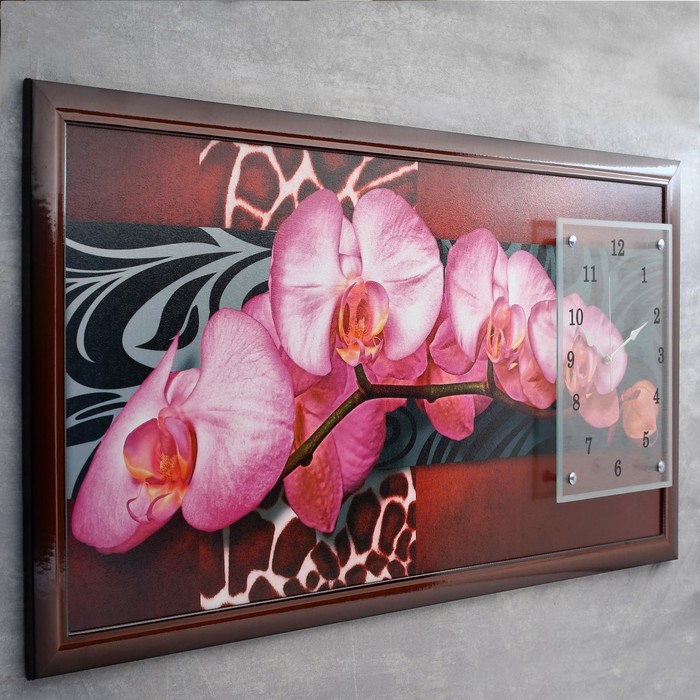 Часы-картина настенные "Орхидеи на ветке", 50х100 см микс