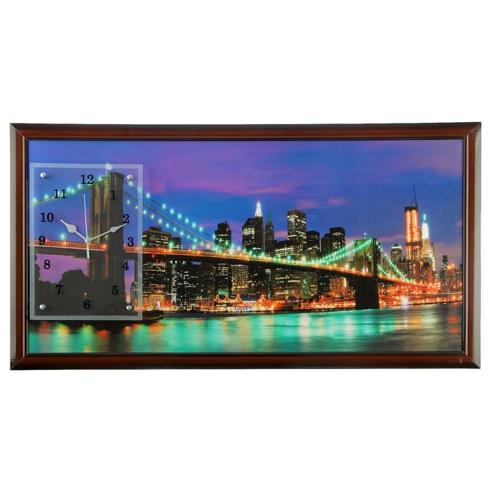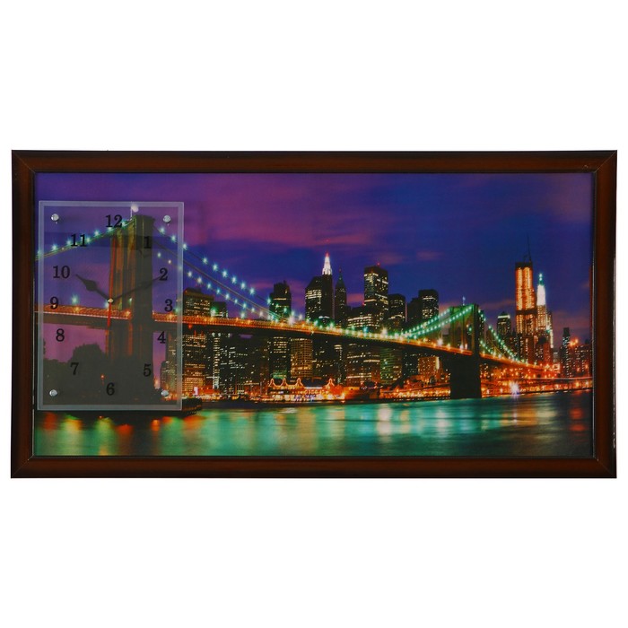 Часы-картина настенные прямоугольные "Бруклинский Мост ночью", 50х100 см микс
