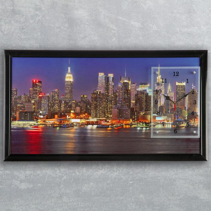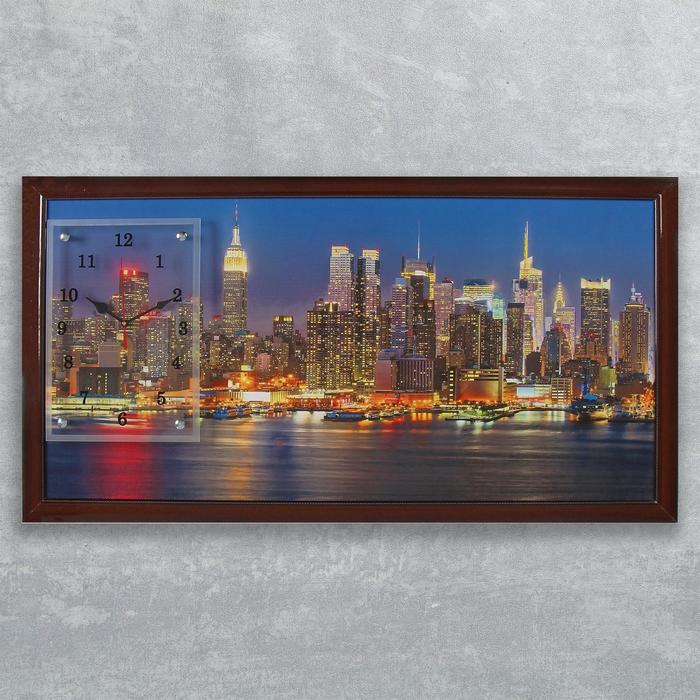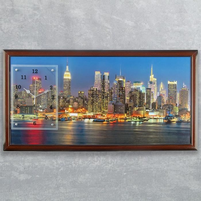 Часы-картина настенные прямоугольные "Огни большого города", 50х100 см микс