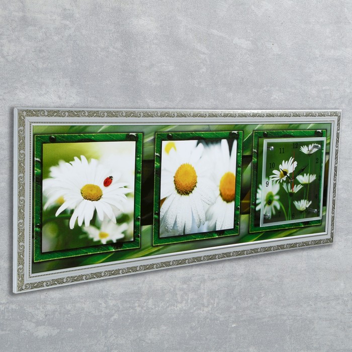 Каждому хозяину периодически приходит мысль обновить свою квартиру, сделать ремонт, перестановку или кардинально поменять внешний вид каждой комнаты. Часы-картина настенные "Ромашки в поле", 35х100 см микс — привлекательная деталь, которая поможет воплотить вашу интерьерную идею, создать неповторимую атмосферу в вашем доме. Окружите себя приятными мелочами, пусть они радуют глаз и дарят гармонию.