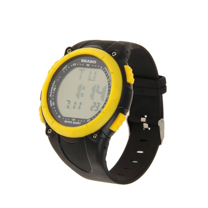 Перед покупкой часов, в первую очередь, необходимо определиться с их предназначением и условиями эксплуатации. Часы наручные мужские электронные с будильником на силиконовом ремешке, цвет черный с желтым созданы специально для активных и динамичных мужчин, которые привыкли добиваться поставленной цели.