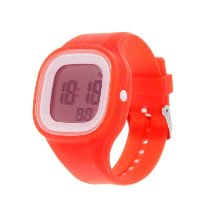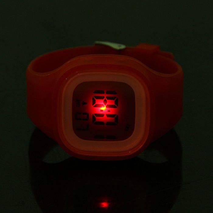Часы наручные женские с подсветкой на силиконовом ремешке, цвет красный