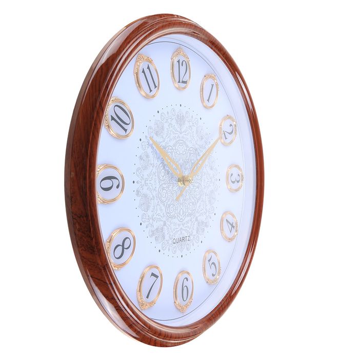 Каждому хозяину периодически приходит мысль обновить свою квартиру, сделать ремонт, перестановку или кардинально поменять внешний вид каждой комнаты. Часы настенные «Цифры в овалах», белый циф-т, обод под дерево, коричневые, d=37 см — привлекательная деталь, которая поможет воплотить вашу интерьерную идею, создать неповторимую атмосферу в вашем доме. Окружите себя приятными мелочами, пусть они радуют глаз и дарят гармонию.