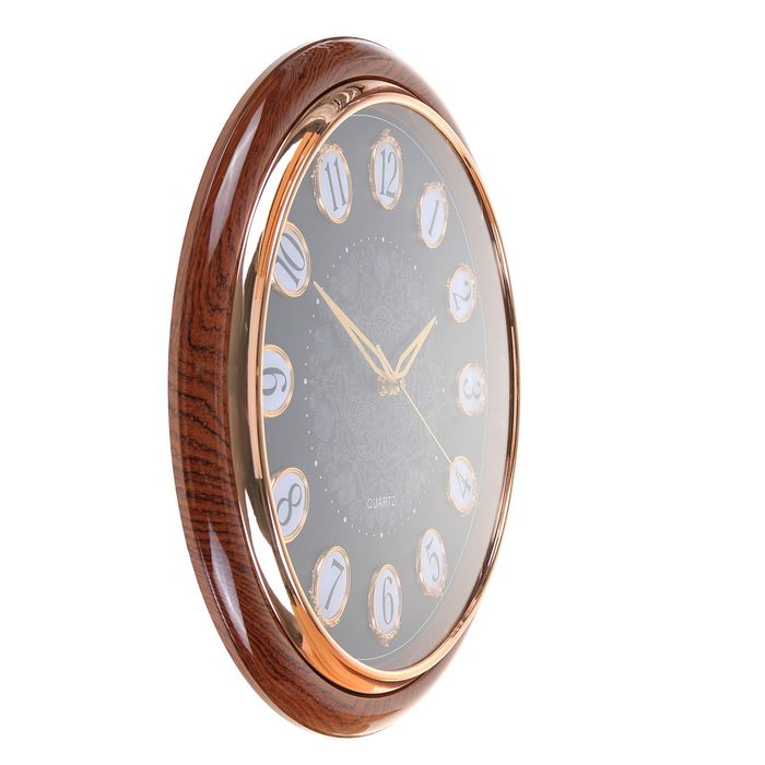 Часы настенные «Цифры в овалах», чёрный циф-т, обод под дерево, коричневые, d=41 см