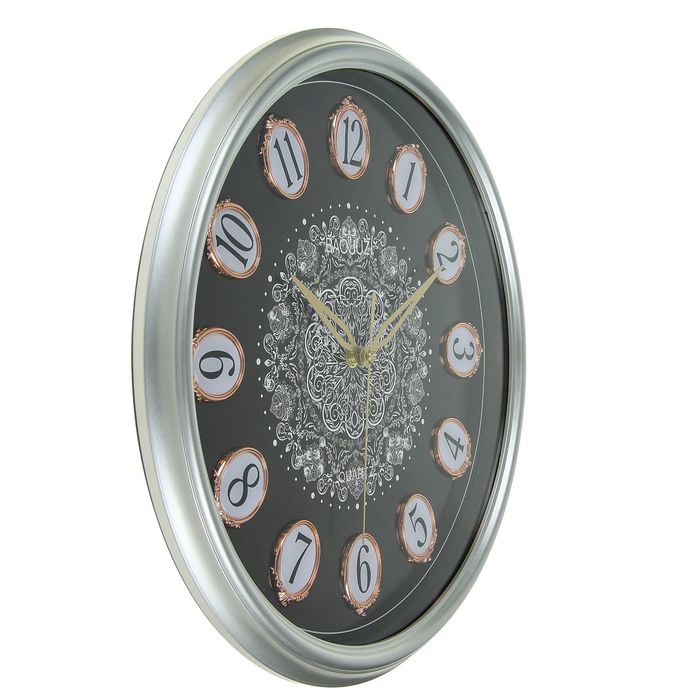 Часы настенные «Цифры в овалах», круглые,, циферблат чёрный, хромирован., d=38 см