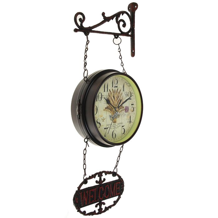 Часы настенные двусторонние "Рожь" с табличкой Welcome, на подвесе, d=17 см, чёрные