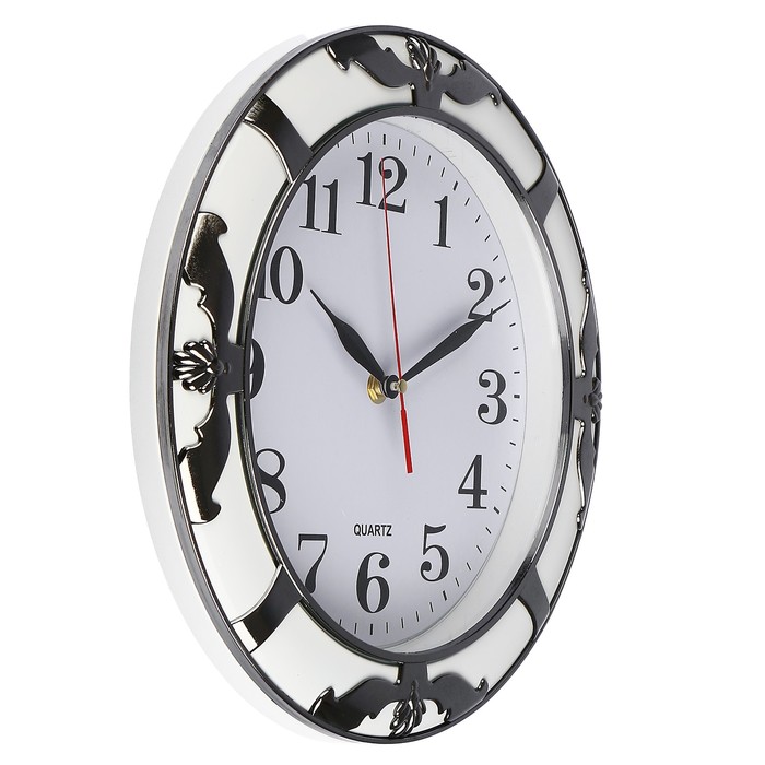 Часы настенные «Горгульи», круглые, вставки по периметру хром, белые, d=30 см