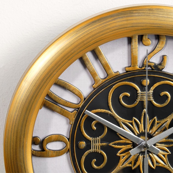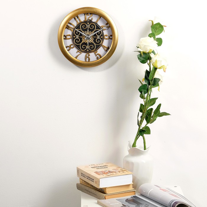 Часы настенные интерьерные, круглые, под золото, витки по центру d=25 см