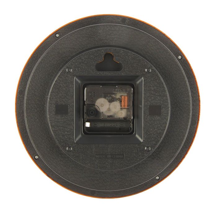 Часы настенные классика круг пластик, края под дерево с точками, циферблат белый 21*21см