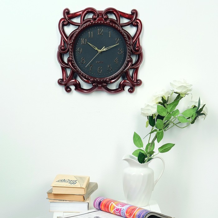 Часы настенные «Классика», круглые, готика, бордо d=35 см