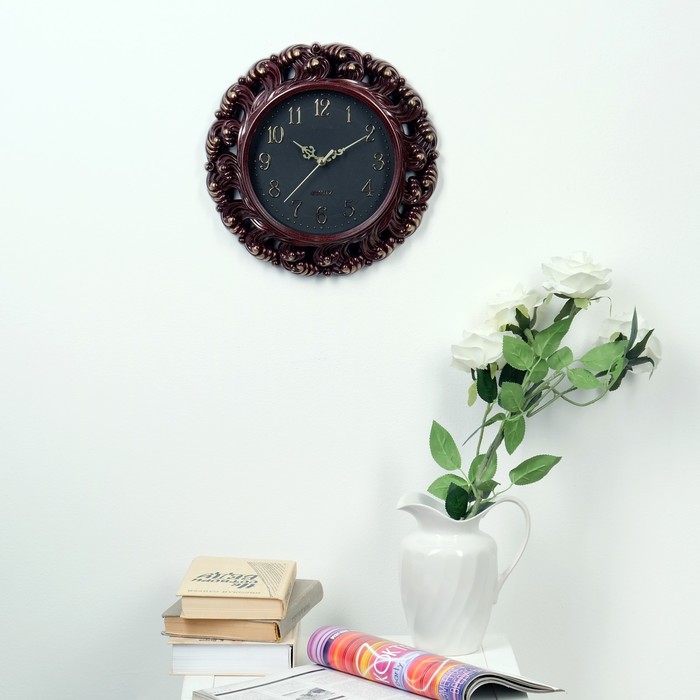 Часы настенные «Классика», круглые, узор волны, бордо d=30 см
