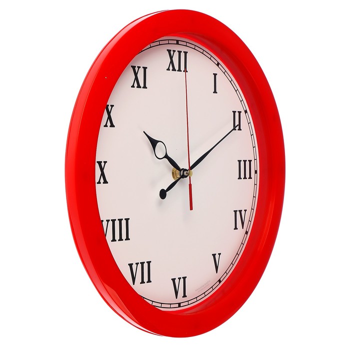 Часы настенные "Классика", римские цифры, красный обод, 28х28 см