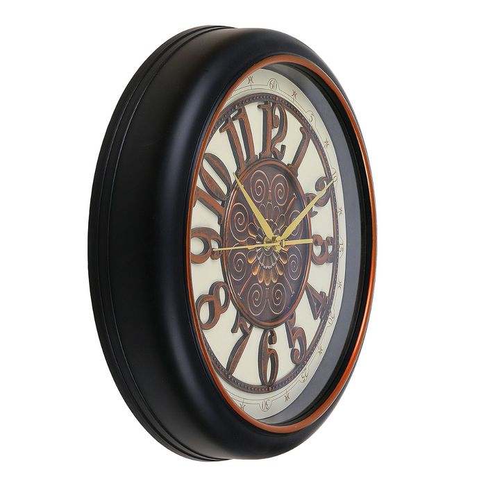 Часы настенные, круглые, циф-т с узором, рама с золотым кантом, чёрные, d=40 см