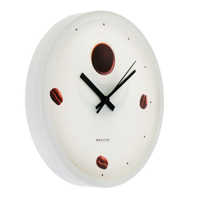 Представляем вашему вниманию популярную модель кухонных часов от торговой марки «Салют». Они выполнены в спокойном гастрономическом дизайне. Их будет приятно подвесить возле варочной поверхности или над обеденным столом.