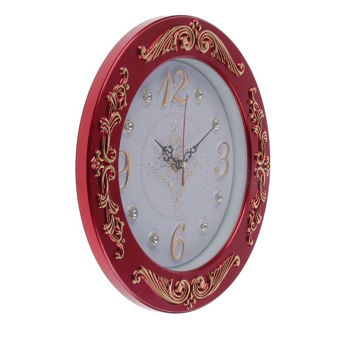 Часы настенные, круглые, лепнина с золотым узором, красные, d=29 см