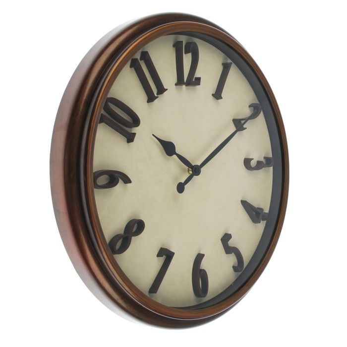 Часы настенные, круглые, объёмные цифры под дерево, цвет шоколадный, d=45 см