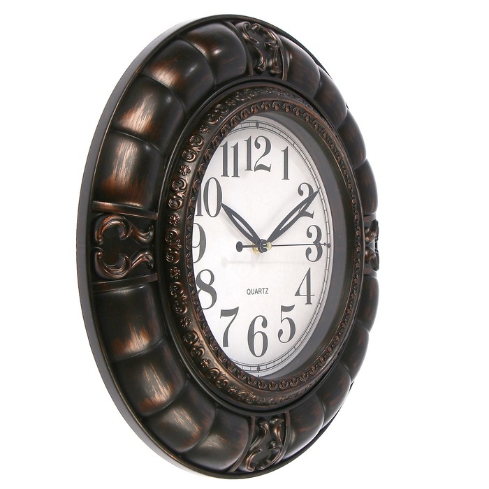 Часы настенные, круглые, рама-секторы, эффект потёртости, тёмно-коричневые, d=40 см
