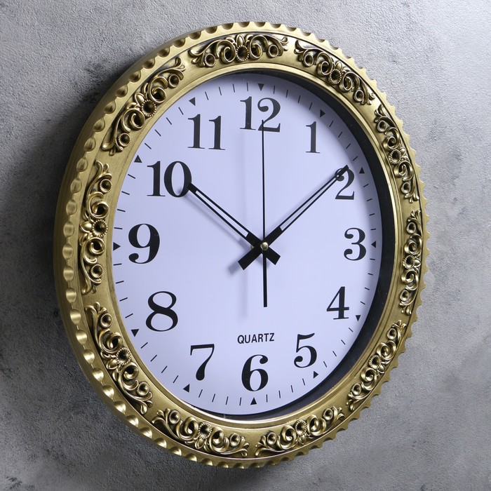 Часы настенные, круглые, рама витиеватая, стиль ретро, бронзовые, d=40 см