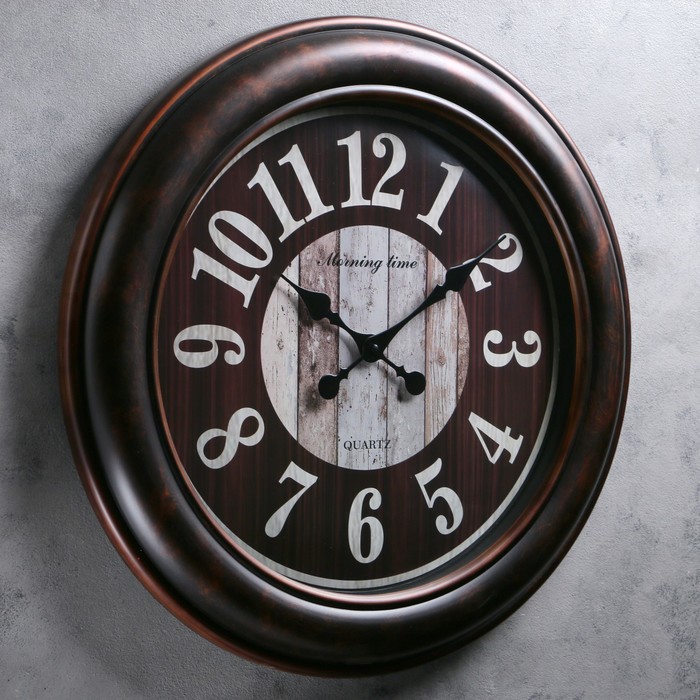 Часы настенные, круглые, римские цифры, циферблат под дерево, корич, d=60 см
